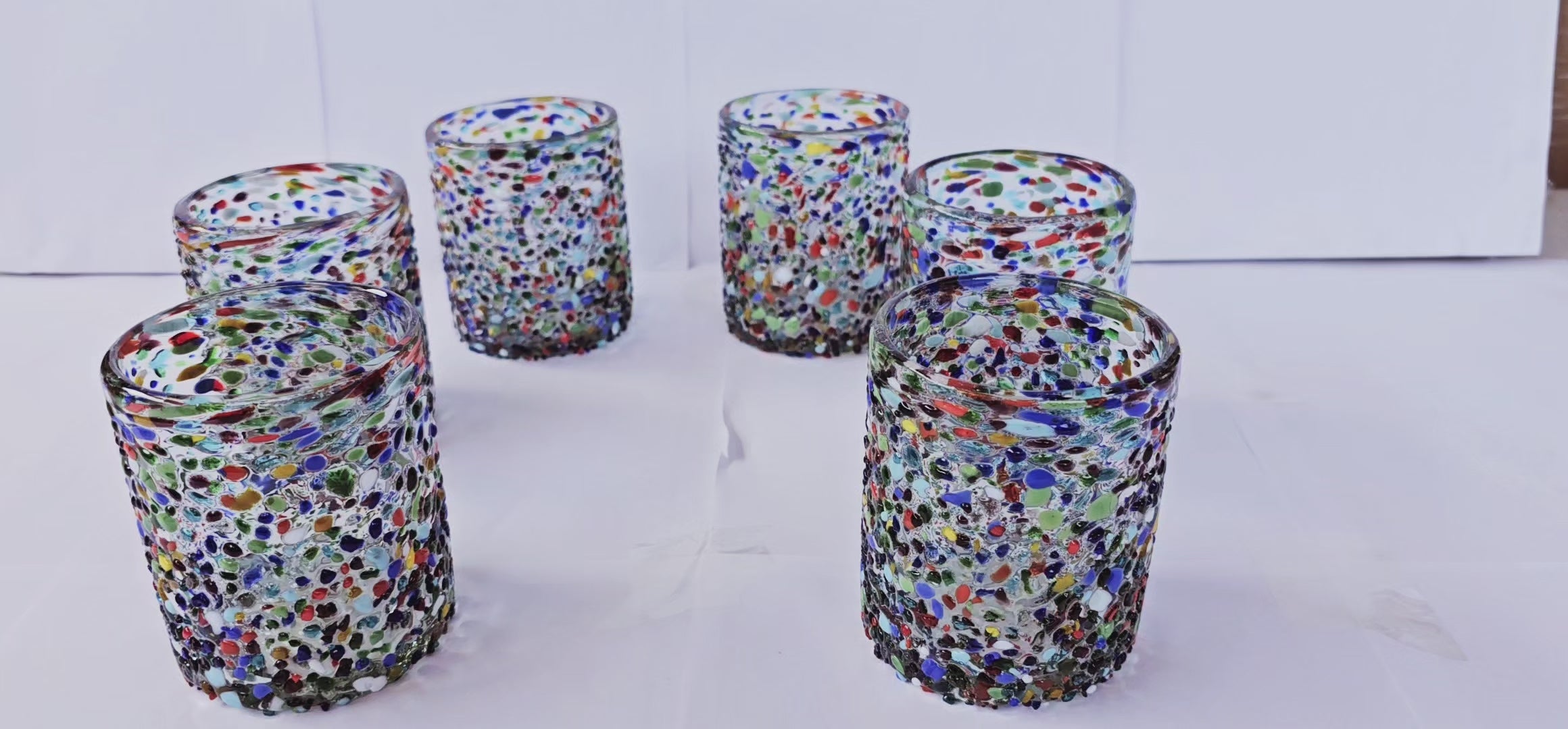 VASOS VIDRIO SOPLADO| SET 6 PIEZAS| ARTESANALES|GRANIZADO (INCLUYE REGALO)